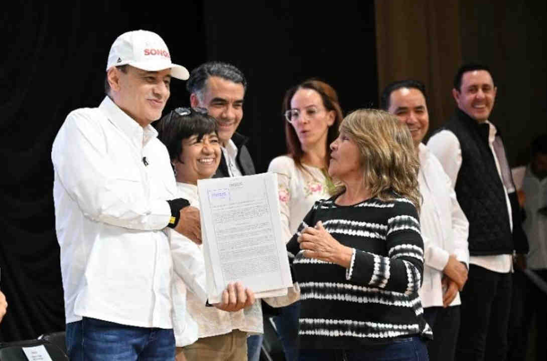 Agua Prieta, Sonora; 12 de abril de 2026.- Familias de Agua Prieta que recibieron su escritura por parte del gobernador Alfonso Durazo Montaño, en el marco del Programa de Vivienda para el Bienestar, agradecieron haber recibido el documento que acredita la legal propiedad del lugar en el que viven, ya que habían esperado décadas para poder formalizar su patrimonio.