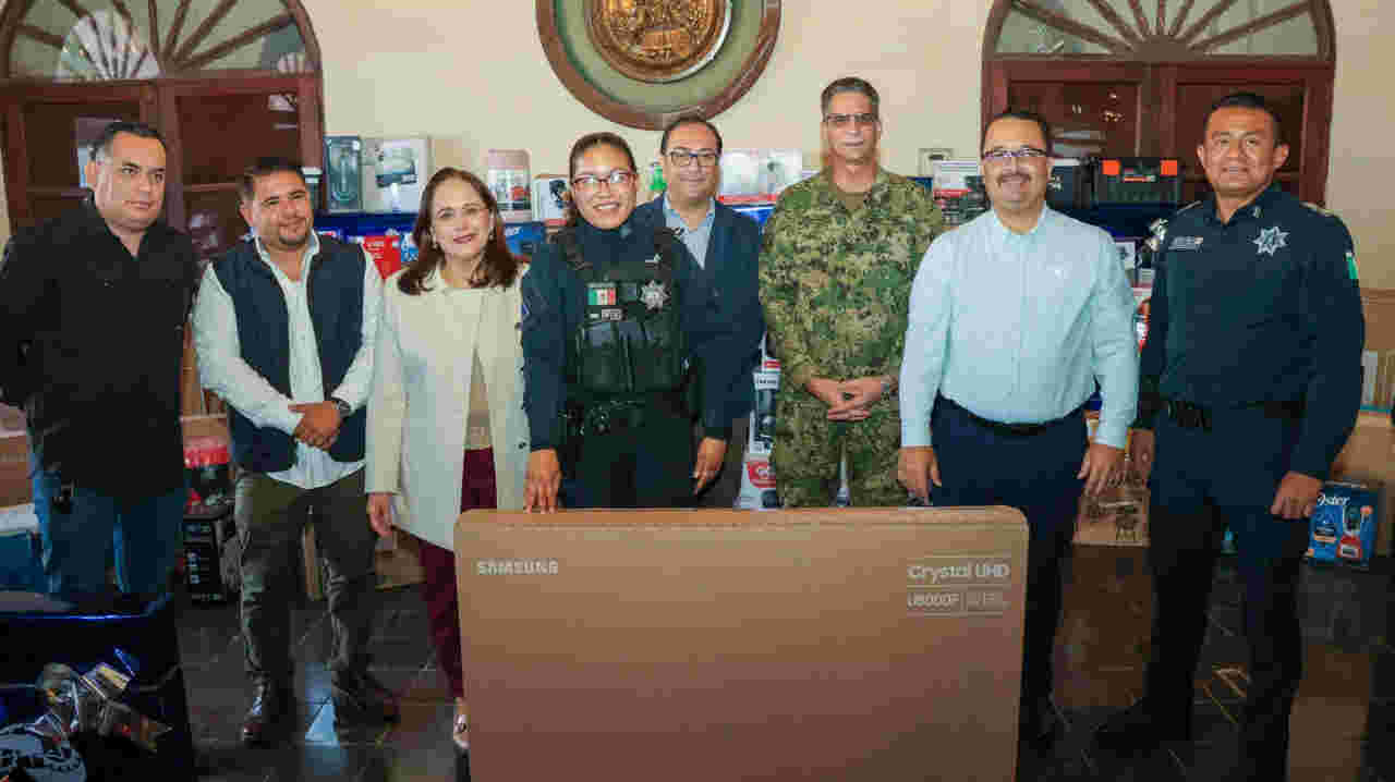 Guaymas, Sonora, 9 de enero de 2026.- En reconocimiento al trabajo y compromiso que realizan en favor de la ciudadanía, el Ayuntamiento de Guaymas celebró este viernes el Día del Policía con un desayuno y la rifa de regalos para los elementos de la corporación de Seguridad Pública y Tránsito Municipal.