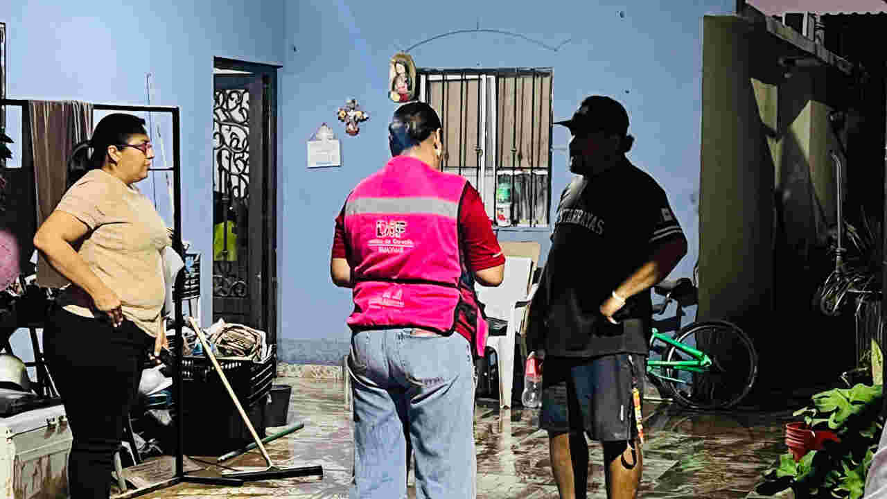 Posteriormente, la presidenta municipal se trasladó a la colonia Niza, donde una familia resultó con pérdidas totales en su vivienda y varias más sufrieron afectaciones al ingresar el agua en sus hogares.