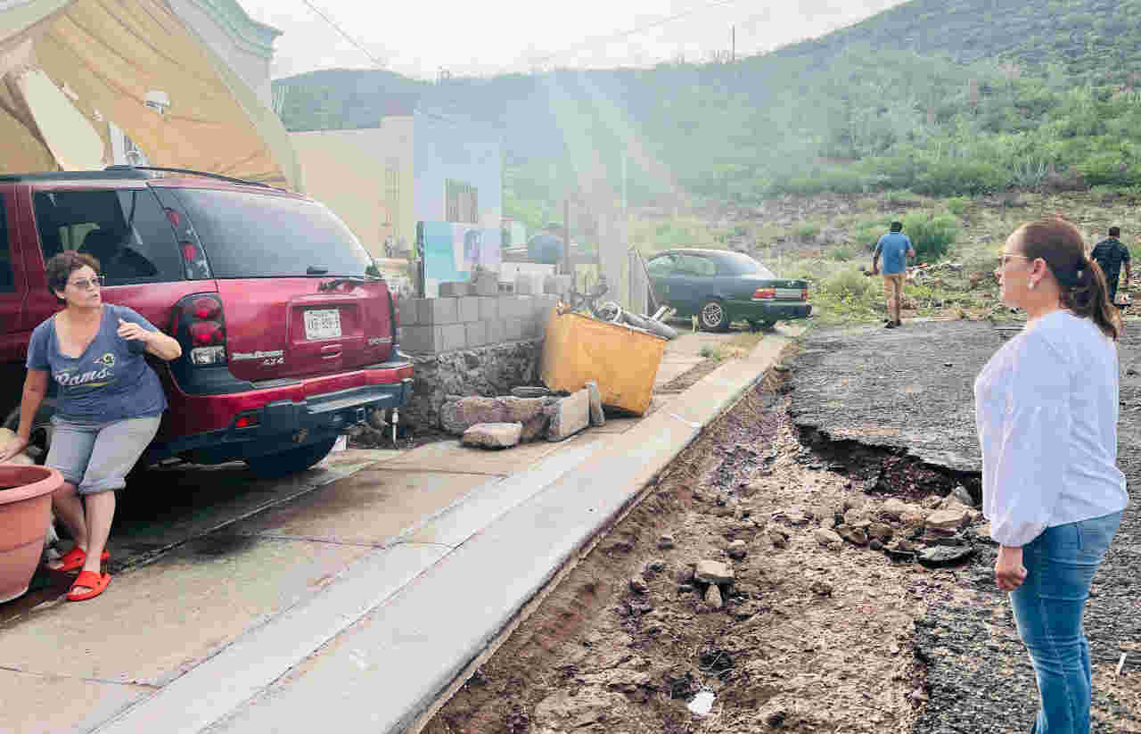 Guaymas, Sonora.– La presidenta municipal de Guaymas, doctora Karla Córdova González, encabezó un recorrido de supervisión para evaluar los daños registrados tras la fuerte lluvia que se registró este día en la región de Guaymas y San Carlos.