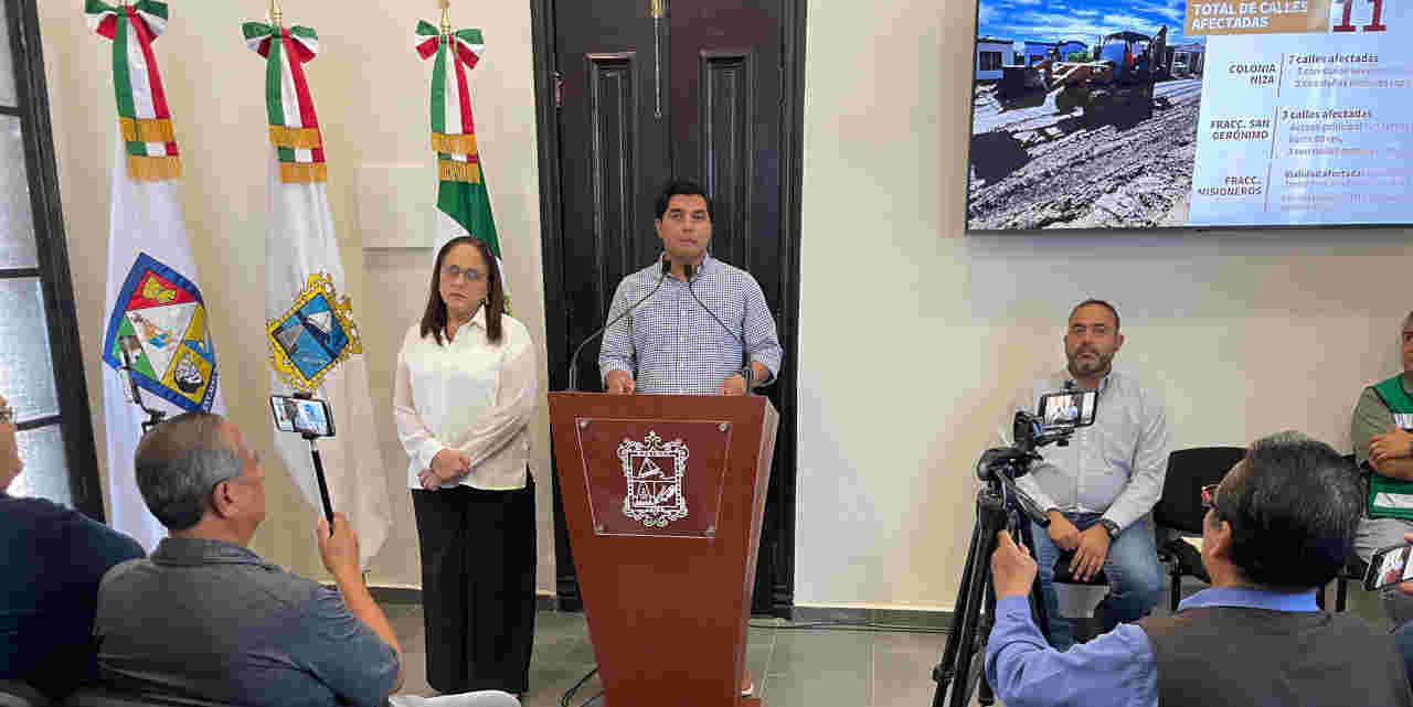 En cuanto al dictamen de vialidades, Víctor Omar Partida Medina, titular de Infraestructura Urbana y Ecología, informó que se contabilizaron 11 calles afectadas: cinco con daños severos e intransitables y dos con afectaciones menores en la colonia Niza; en el fraccionamiento San Gerónimo, tres calles resultaron dañadas, incluido el acceso principal con surcos de hasta 50 centímetros, además de dos vialidades con daños reparables; y en el fraccionamiento Misioneros se registró el levantamiento del pavimento en el crucero de San Francisco Javier con San Germán y en la calle Mar Caribe, debido al exceso de agua.