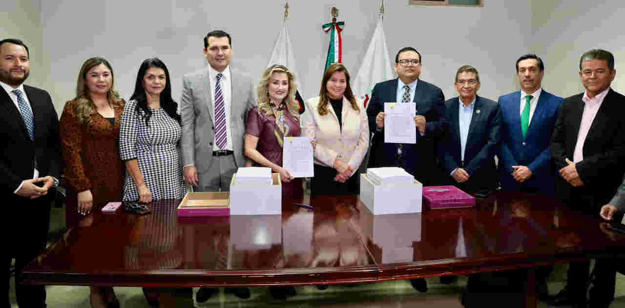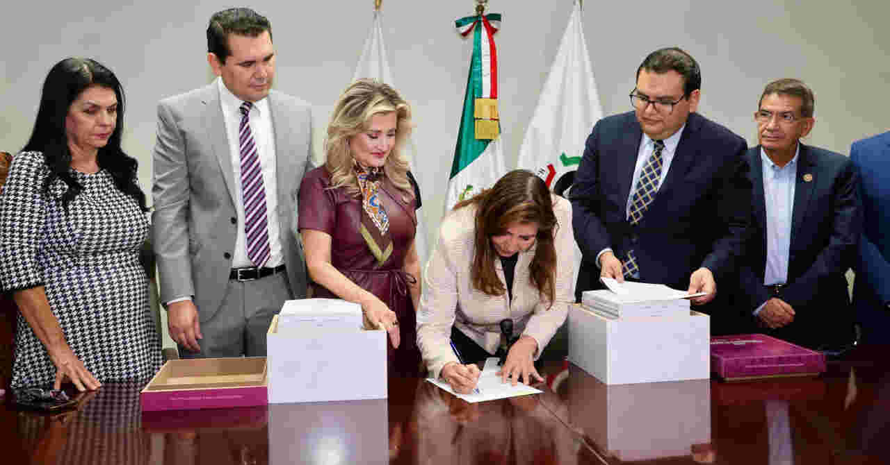 El paquete Económico 2026 fue recibido por la presidenta de la Mesa Directiva del Congreso del Estado María Eduwiges Espinoza Tapia y la presidenta de la Comisión de Hacienda, Elia Sallard Hernández, junto a los coordinadores de las diferentes fracciones parlamentarias de la LXIV legislatura, quienes habrán de analizar la propuesta y es su caso aprobarla.