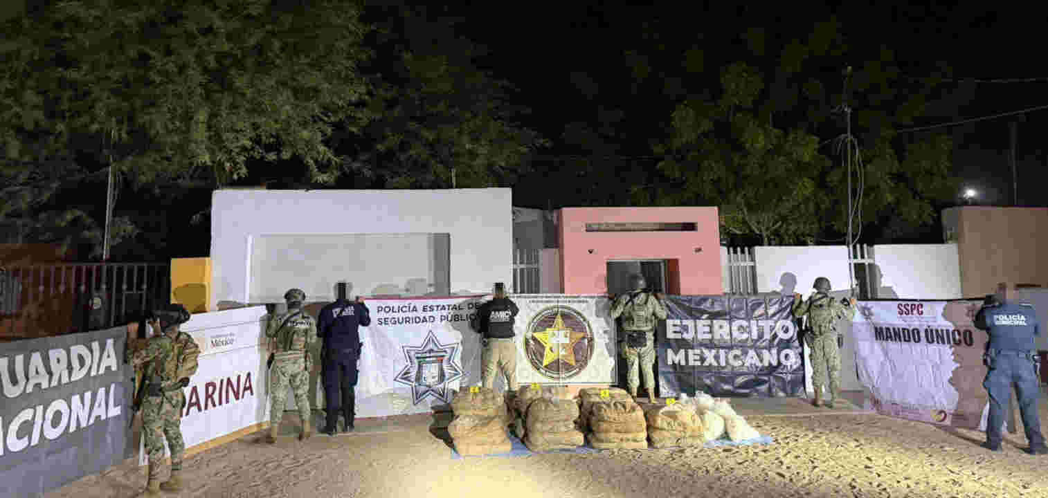 Guaymas, Sonora. - La Secretaría de Marina, a través de la Armada de México, por conducto de la Segunda Región Naval, en el marco de las acciones para mantener el orden social en el Estado de Sonora, personal naval en coadyuvancia con la Policía Municipal, informa que, durante recorridos de vigilancia logró el aseguramiento de diverso material ilícito en el municipio de Guaymas, Sonora.